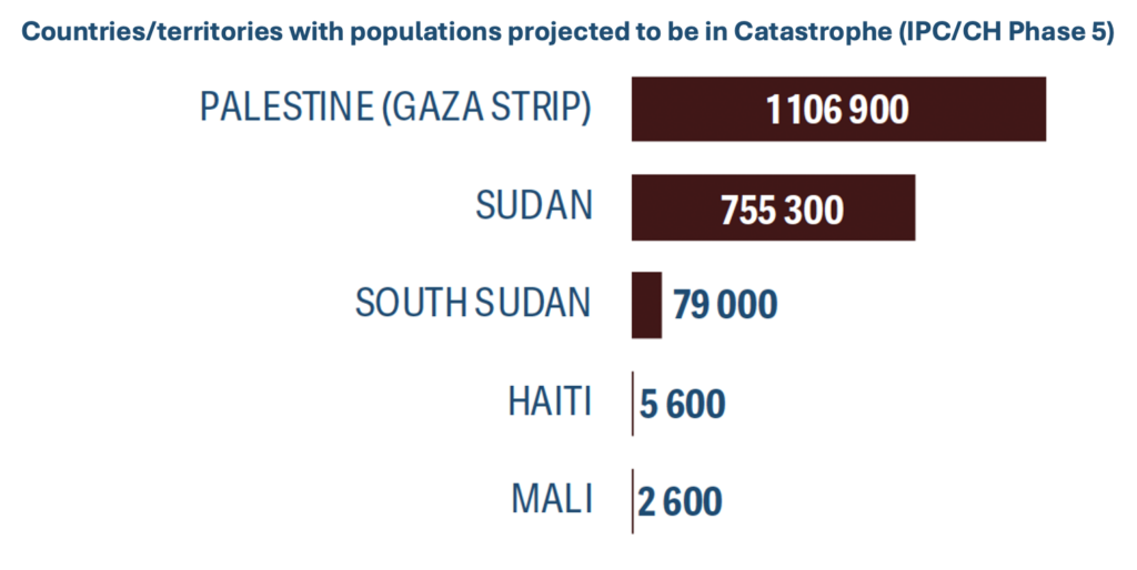 This is now most pressing as the number of people facing IPC Phase 5 (Catastrophe)-level food insecurity more than doubled from 2023, with populations Sudan, the Gaza Strip, South Sudan, Haiti, and Mali being impacted (Figure 2).