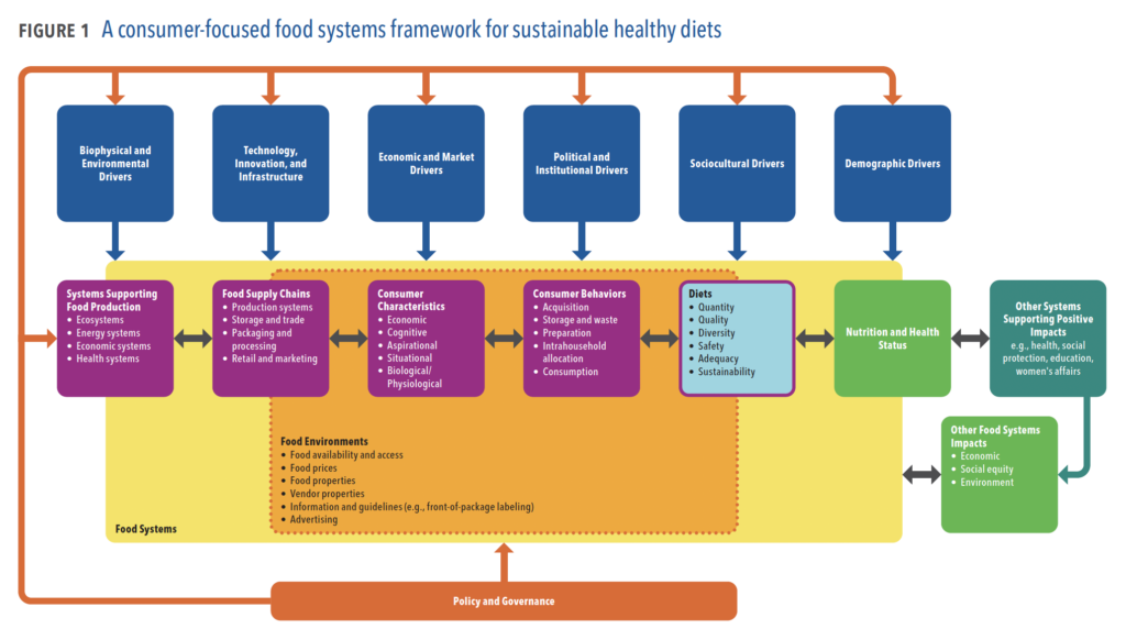 • Social, cultural, and demographic drivers: Understanding the political and socioeconomic drivers that shape diets, such as income, cultural norms, and social dynamics, can inform more effective interventions.
