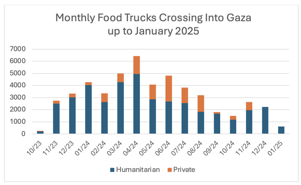 Source: Humanitarian Data Exchange (https://data.humdata.org/dataset/state-of-palestine-gaza-aid-truck-data). Note that private sector tracking is complete since May 2024.