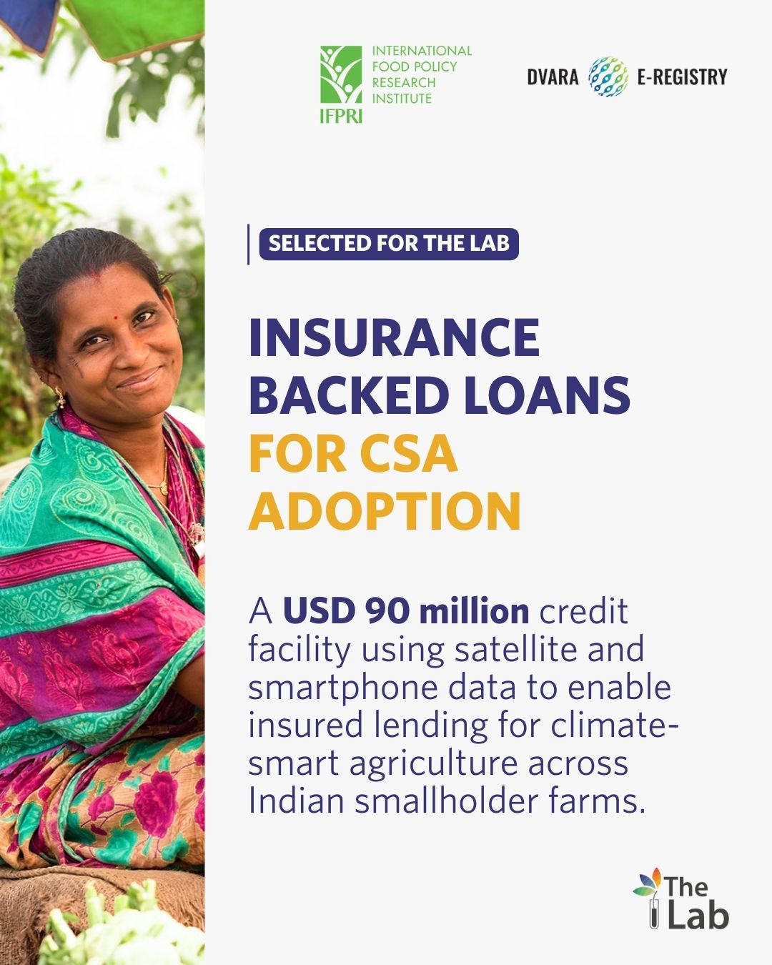 The International Food Policy Research Institute (IFPRI) and Dvara E‑Registry’s innovative Insurance Backed Loans for Climate-Smart Agriculture (CSA) Adoption initiative has been selected by the Global Innovation Lab for Climate Finance (“the Lab”) as one of eight global climate finance solutions to enter its 2026 incubation cycle. The cohort was chosen from a record 1,172 applications worldwide. [See the Lab’s global announcement here.]